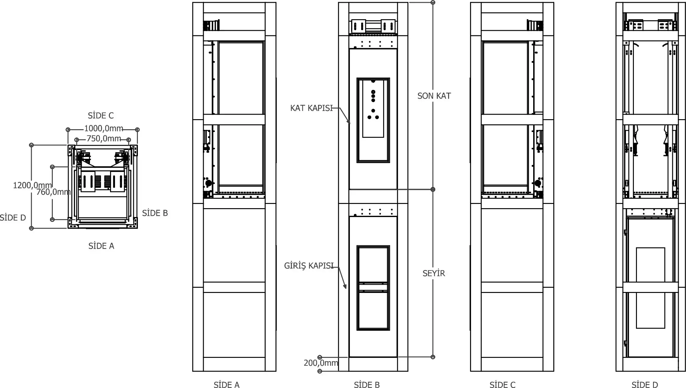Ev tipi asansör ölçüleri AutoCAD formatında